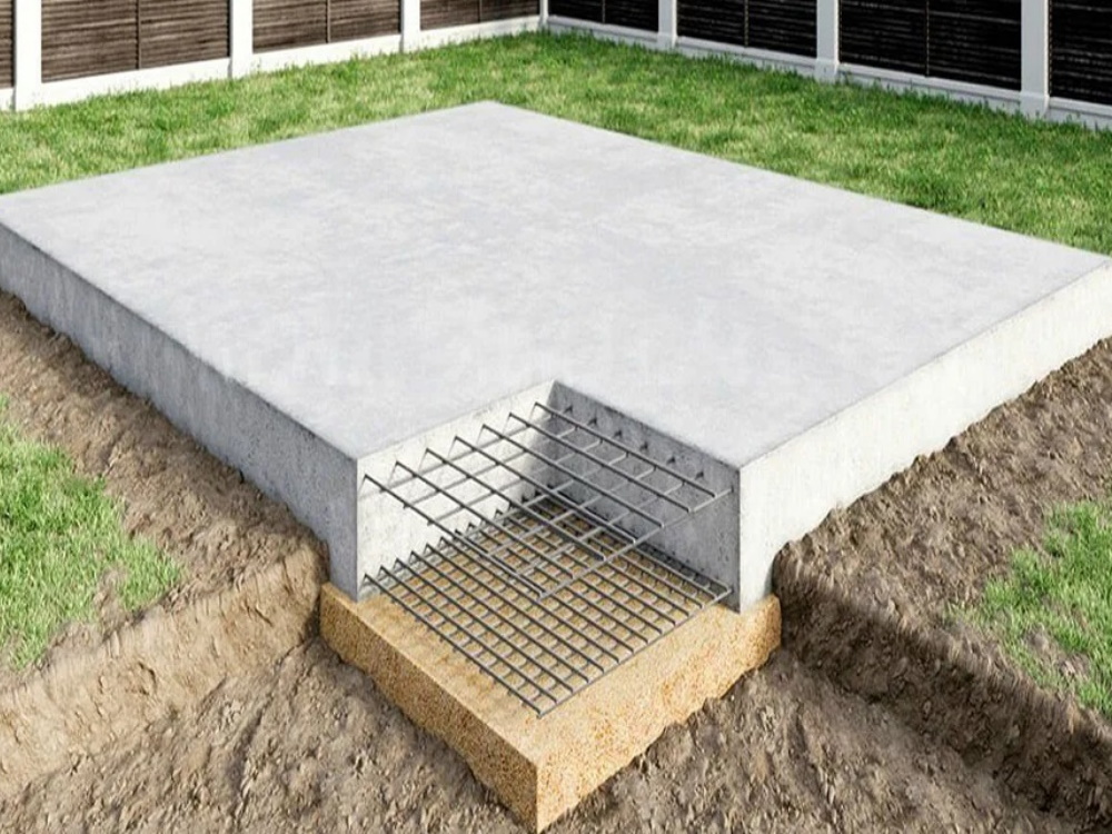 - Монолитная плита. Такая конструкция является наиболее надежной для большинства типов почвы: ровная плита равномерно распределяет вес, поэтому давление на единицу площади минимальное. Благодаря надежному армированию, гидроизоляции, достаточной толщине она идеально подходит для самых массивных объектов, даже при малейших подвижках почвы всего лишь «плавает», но не деформируется.